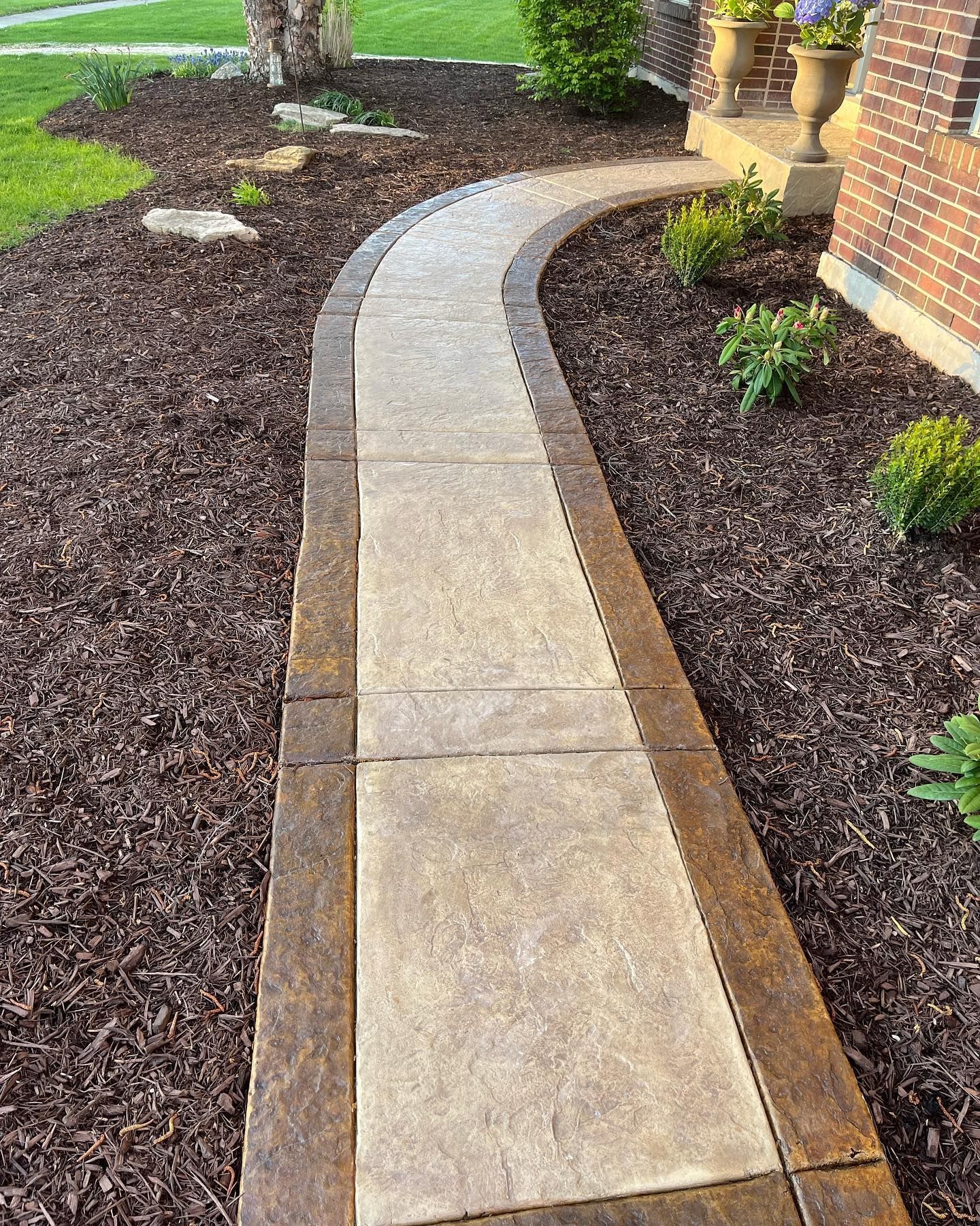 Patios are versatile features of a landscape that can take virtually any form and they are normally made from concrete or brick pavers. Concrete patios have distinct advantages over wooden decks or patios as they are much more durable and require little maintenance compared to wood that needs occasional resealing. Concrete also comes in different styles and colors which allows for more creative freedom to install a patio that matches the design and décor of your home or landscape. Our staff can install custom concrete patios to fit the unique layout of your yard with our specialized equipment.